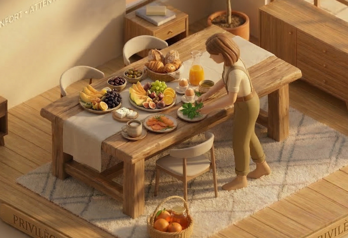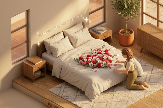 Les options doivent être commandées au plus tard 48 heures avant l'arrivée des voyageurs pour garantir la disponibilité des produits frais (Petit-déjeuner, Apéro, Fleurs).